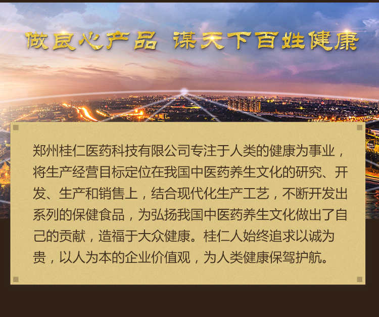 鄭州桂仁醫藥科技有限公司視質量如生命,在產品研發中注重每一個細微的變化,力求將每一個環節都做到精益求精, 只為讓天下百姓放心、安心。 誠信于天下的鄭州桂仁醫藥人將“保證絕無借口”作為企業的準則,時時刻刻力求以一流的質量,一 流的服務,一流的信譽,一流的敬業精神,最終為天下百姓提供一流的補硒產品和服務,竭盡全力為天下百姓健康。
