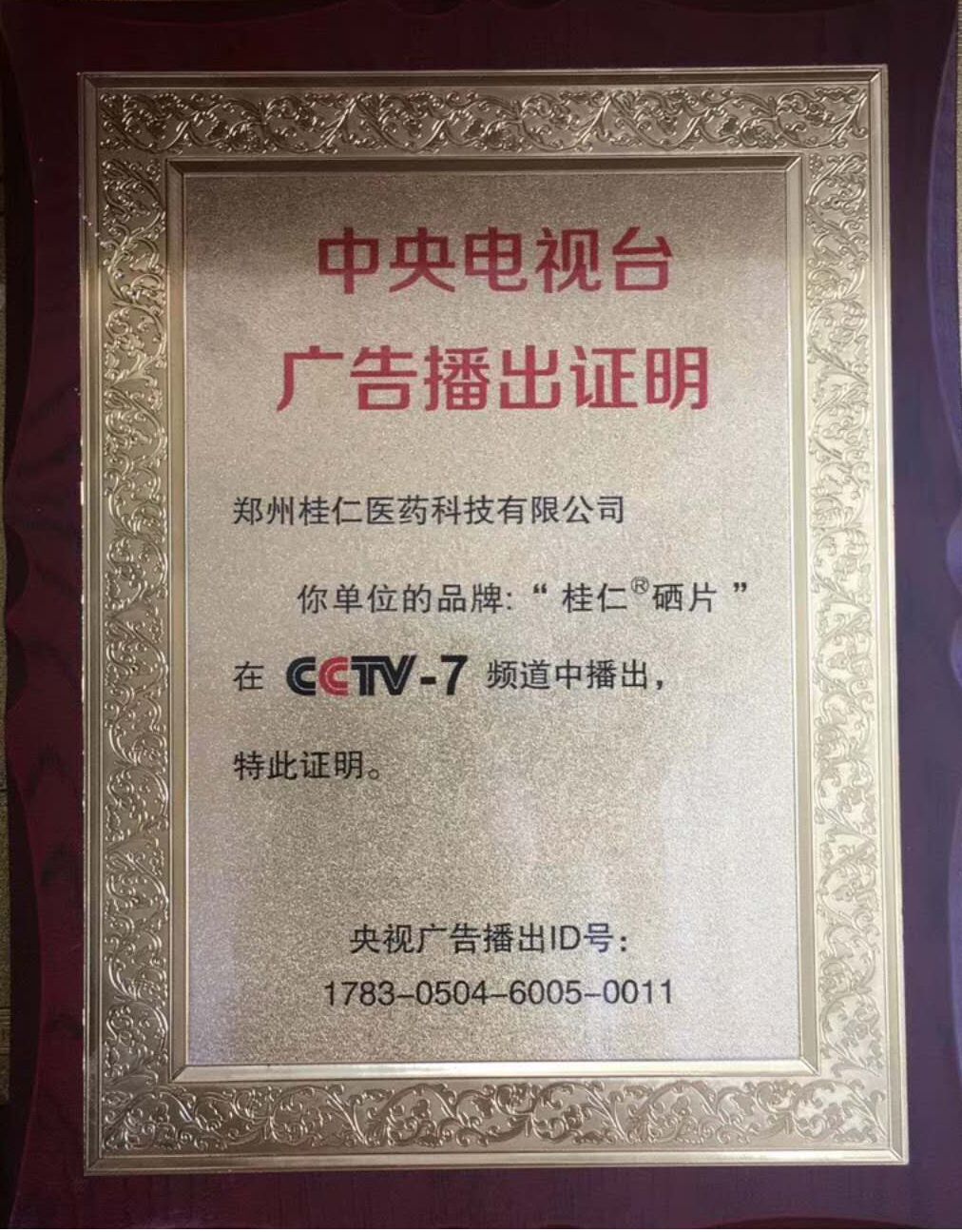 當前位置:首頁 > 榮譽資質 > 中央電視臺廣告播出證明