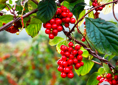 春初生苗,引赤登于高木,其長六七尺。葉尖圓似杏葉,三、四月開黃白花,類小蓮花。七月成實,如豌豆許大,生青熟紅紫。”干燥果實略呈球形或扁球形,直徑5~8毫米。外皮鮮紅色,紫紅色或暗紅色。顯油潤,有不整齊的皺縮。果肉柔軟,常數個粘連一起;內含種子1~2枚,腎形,棕黃色,有光澤,堅硬,種仁白色。果肉氣微弱而特殊,味酸。具有收斂固澀、益氣生津、補腎寧心等功效。
